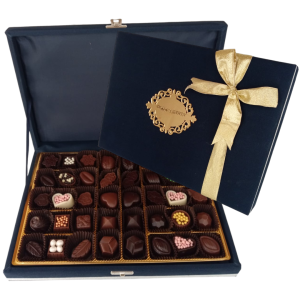 AHŞAP LACİVERT KADİFE KUTU KİŞİYE ÖZEL ÇİKOLATA SPECIAL