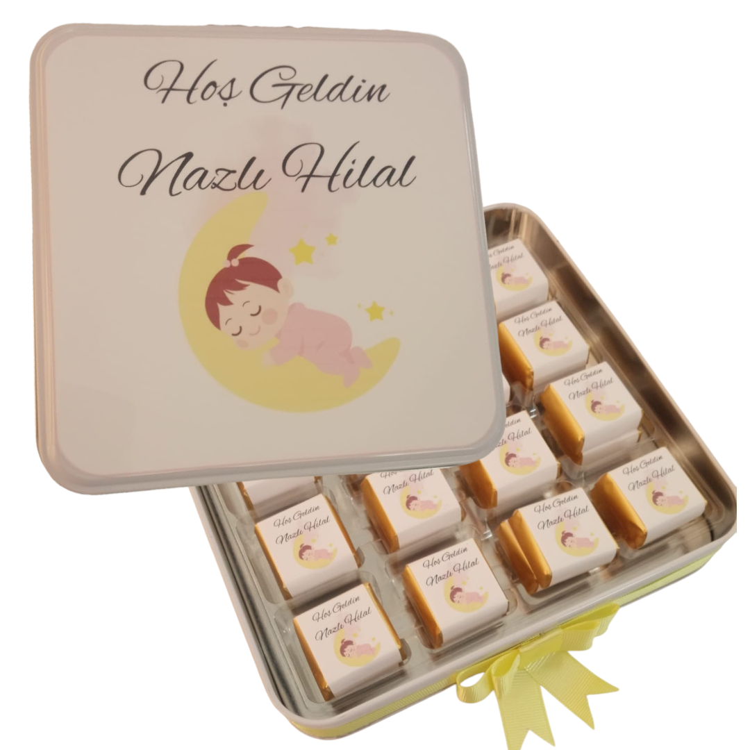 KARE METAL KUTUDA GORSEL BASKILI KIZ BEBEK CIKOLATASI